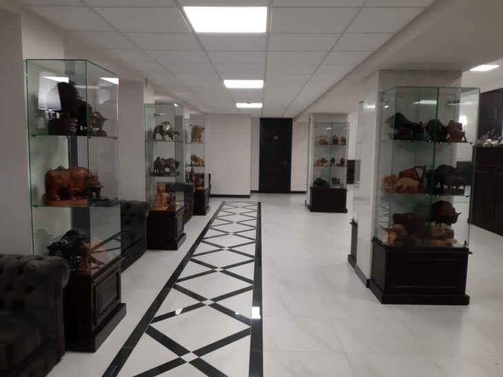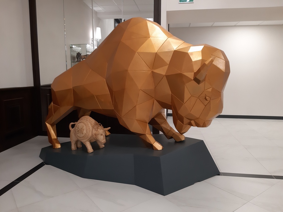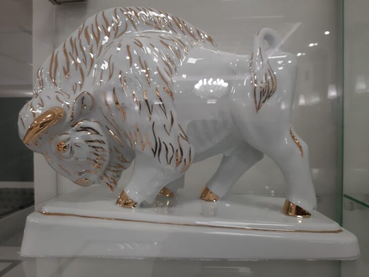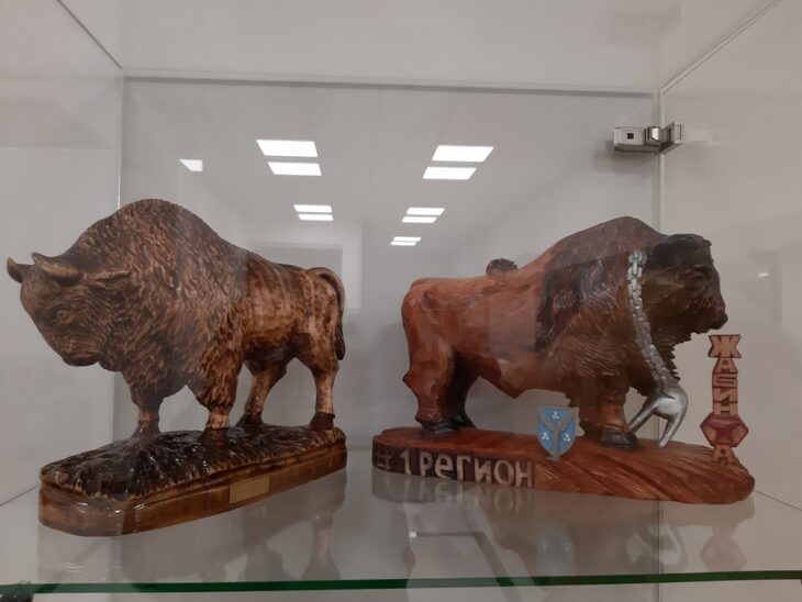 W ekspozycji można zobaczyć także żubry ze stali, brązu, porcelany i fajansu, szkła, lnu i wełny, tkanin, słomy, ceramiki, bursztynu, a nawet czekolady i plasteliny. Najmniejszy eksponat ma około 1 cm wysokości. Kolekcję wzbogaciły unikatowe figurki wykonane ręcznie przez utalentowanych mieszkańców wszystkich miast i rejonów obwodu brzeskiego, z użyciem rozmaitych technik. Przykładowo, żubr autorstwa twórców z rejonu łuninieckiego powstał z dębu bagiennego wydobytego z poleskich mokradeł, gdzie przeleżał wiele stuleci. Ci sami rzemieślnicy sięgnęli po jeszcze trudniejszy materiał, przekształcając brzozowy czeczot w figurkę zwierzęcia wpisanego do Czerwonej Księgi. Mistrz z rejonu stolińskiego wyciosał żubra siekierą z drewnianego kloca. Swoją miniaturową wersję leśnego olbrzyma przygotowano w iwanowskiej szkole bednarstwa. Artystki z rejonu małoryckiego „ubrały” słomianego żubra w strój tradycyjny swojego regionu.