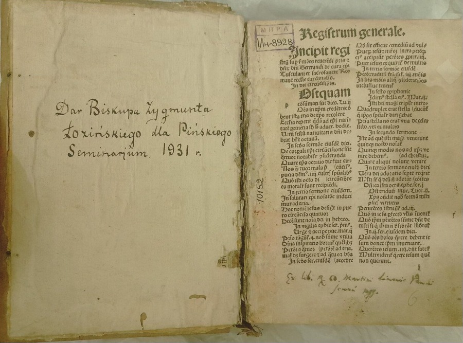 W styczniu nadeszła odpowiedź od opiekuna kolekcji rzadkich książek. Potwierdzono, że znaczna część książek i rękopisów z dawnej pińskiej biblioteki znajduje się w Petersburgu, jednak zbiory są rozproszone po różnych działach i nie zostały wydzielone jako osobna kolekcja – nikt dotąd nie przeprowadził pełnego opracowania proweniencyjnego. W samym dziale rzadkiej książki wstępnie zidentyfikowano dziesięć druków. Wśród nich znajdują się m.in.: „Kazania na czas i święta” Bertranda de La Toura (1501), „Rozważania o sposobach prawdziwego rządzenia, przeciw Niccolò Machiavellemu” Innocenta Gentilleta (1578) oraz „Wergiliusz na opak” Paula Scarrona (1752). Jak poinformowano, w dziale rękopisów ponad 50 jednostek pochodzi z Pińska, a biblioteka naukowa nie ustaliła jeszcze ostatecznej liczby. Jednocześnie podkreślono, że fondy są dostępne do badań i częściowej digitalizacji na miejscu.
