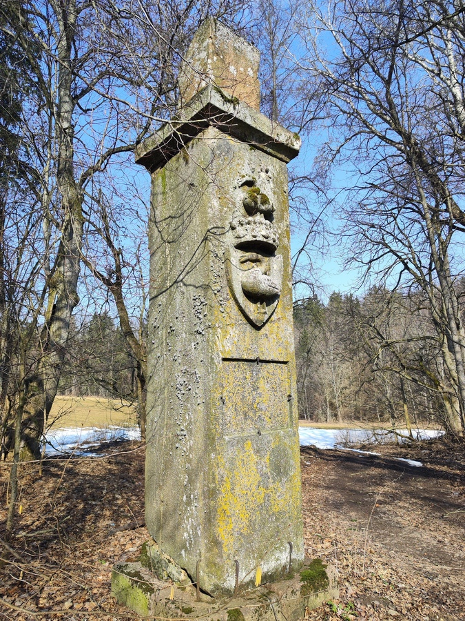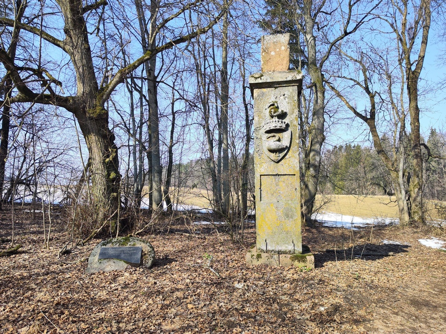 Słup z herbem Dunin-Rajeckich „Łabędź”. Stan obecny