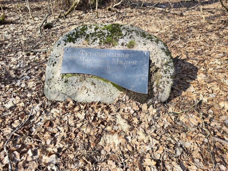 Inskrypcja na tablicy w j.białoruskim: „Tutaj spoczywa/s.Czesława Malek/pallotynka/1913-1938”