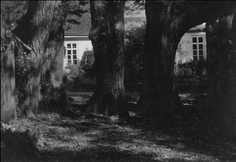 Stare dęby przed dworem w Rajcy. Foto J. Bułhaka, 1918 r.