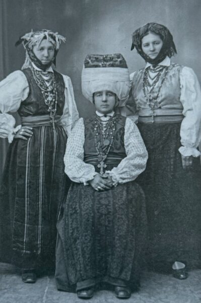 W ubiorze miejscowych mieszczan szeroko wykorzystywano tkaniny manufakturowe, wyroby jubilerskie, dobrze wyprawioną skórę oraz różnego rodzaju dodatki podkreślające status właściciela. Szczególne miejsce zajmowała biżuteria noszona na piersi. Kobiety zdobiły się szklanymi paciorkami, ozdobami z mosiądzu, pereł i kamieni, bransoletami, medalikami i napierśnikami. Zamożniejsze mieszczanki mogły pozwolić sobie na droższą biżuterię z metalu i kamieni, wykonywaną na zamówienie. Ozdoba nie była tu jedynie elementem estetycznym. Niosła również znaczenie społeczne, religijne, a niekiedy i ochronne.