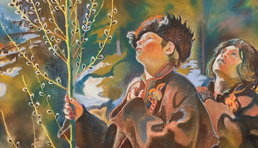 Zafascynowany zwyczajami i ornamentyką huculską Kazimierz Sichulski stworzył jeden z piękniejszych malarskich tryptyków poświęconych Niedzieli Palmowej. Powstał w 1906 r. Jego pierwsza część przedstawia dwie dziewczynki huculskie w bajecznie kolorowych strojach.