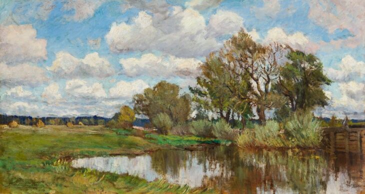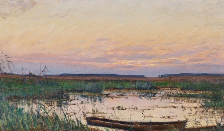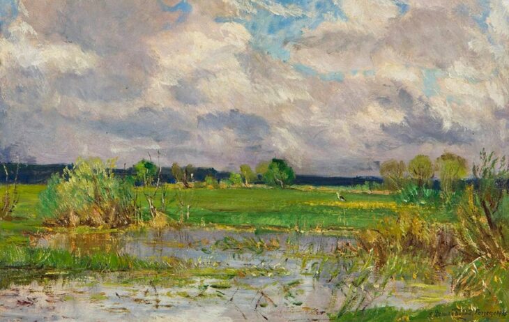 To właśnie na Polesiu te dwa światy spotkały się najpełniej. Artysta odnalazł tu krajobraz, który odpowiadał jego temperamentowi: cichy, rozległy, pozbawiony dramatycznych akcentów, a jednocześnie pełen subtelnych napięć.