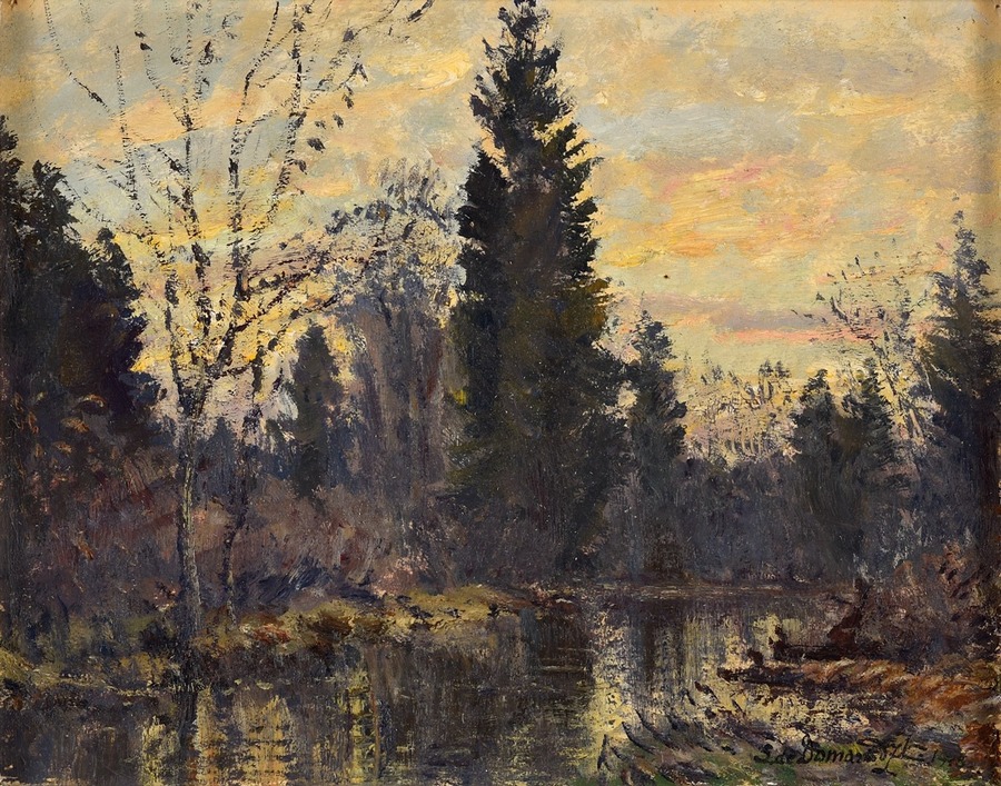 Choć Domaradzki był artystą o biografii międzynarodowej, to właśnie Polesie zajmuje szczególne miejsce w jego twórczości. Wielokrotnie odwiedzał majątki Skirmunttów w Porzeczu i Białym Dworze, a także Twardowskich w pobliskiej Wieleśnicy. Te wizyty nie były jedynie epizodem towarzyskim – stały się impulsem do powstania dziesiątek pejzaży, w których artysta utrwalił unikatowy charakter tej krainy.