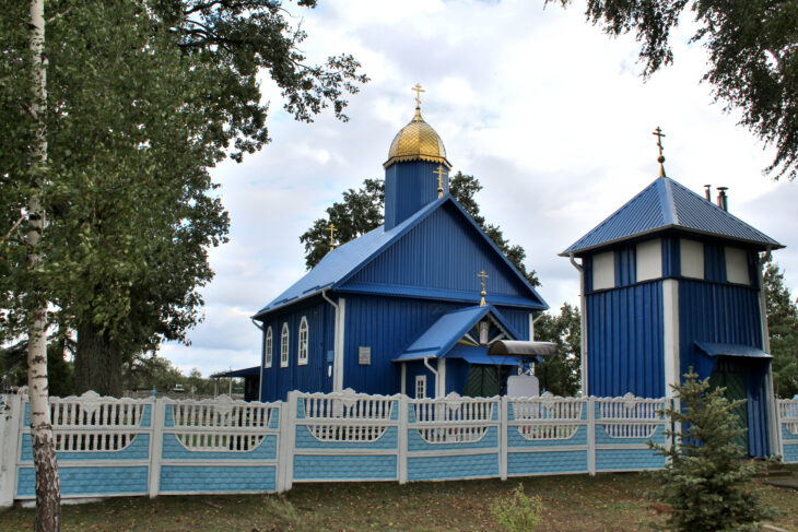 Na wschodnim skraju wsi spotkalismy XVIII-wieczną drewnianą cerkiew. Dziś to jest cerkiew prawosławna p.w. św. Michała, zbudowana w 1780 r., , ale pierwotnie była to cerkiew unicka, jak wszystkie wznoszone w tym czasie na Polesiu. Cerkiew składa się z niewielkiego przedsionka i prezbiterium z dwiema niskimi zakkrystiami. Jej fasadę wieńczy trójkatny fronton nad którym wzniosi się ośmioboczna wieżyczka z kopułką. Na osi cerkwi stoi dwukondygnacyjna dzwonnica-brama.