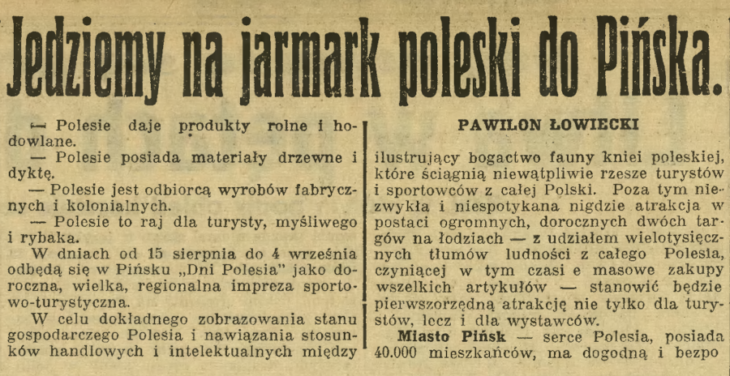 Liczba 42.000 osób, które zwiedziły „Jarmark Poleski w roku 1937, jest dobitną tego ilustracją.