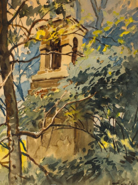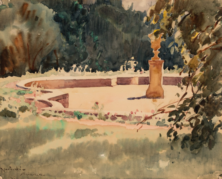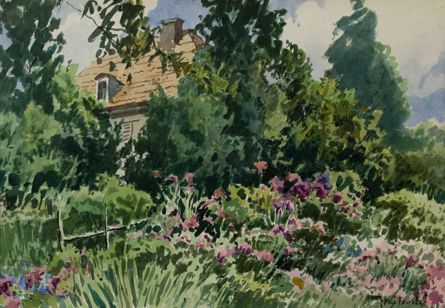 Nartowski chętnie sięgał po motywy architektury i krajobrazu – malował m.in. Park w Mańkiewiczach, okolice Duboi czy Poczapowa. Jednak nawet tam, gdzie pojawiają się ślady działalności człowieka, najważniejsza pozostaje przyroda – rozświetlona, pulsująca życiem, a jednocześnie pełna ciszy.