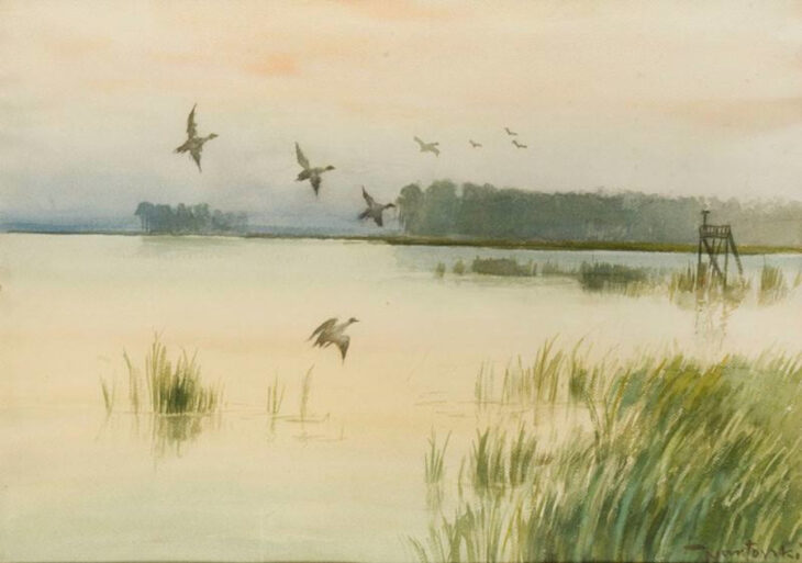 Jako akwarelista był ceniony za doskonały rysunek i subtelną modulację kolorów. Potrafił uchwycić to, co ulotne – odbicia światła w wodzie, poranną mgłę, ruch ptaków nad rozlewiskami. Właśnie dzięki tej wrażliwości jego obrazy nie są jedynie zapisem miejsca, ale także nastroju.